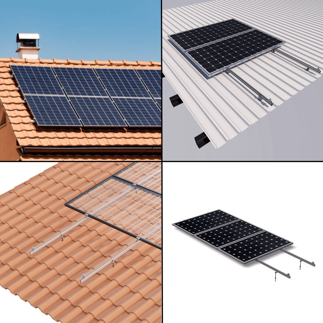 Al ser un sistema coplanar, el peso se reparte de forma homogénea sobre el tejado o cubierta, lo que ayuda a proteger la estructura y maximiza la vida útil de la instalación. Este tipo de montaje es especialmente recomendable para tejados inclinados de teja, chapa o fibrocemento, donde se busca una solución discreta, eficiente y con bajo impacto visual.