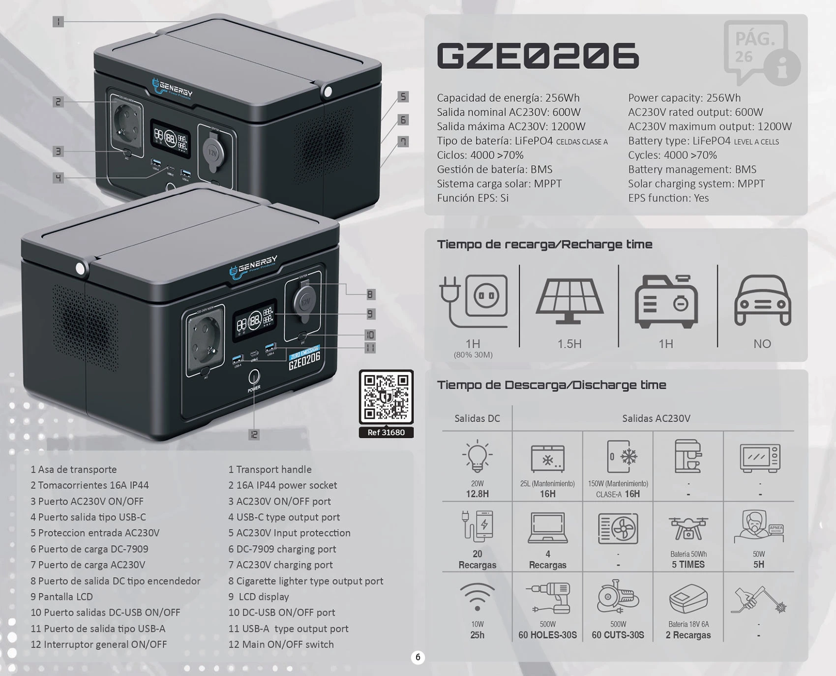 Estación de carga Genergy GZE0206 256Wh 600W | All in One