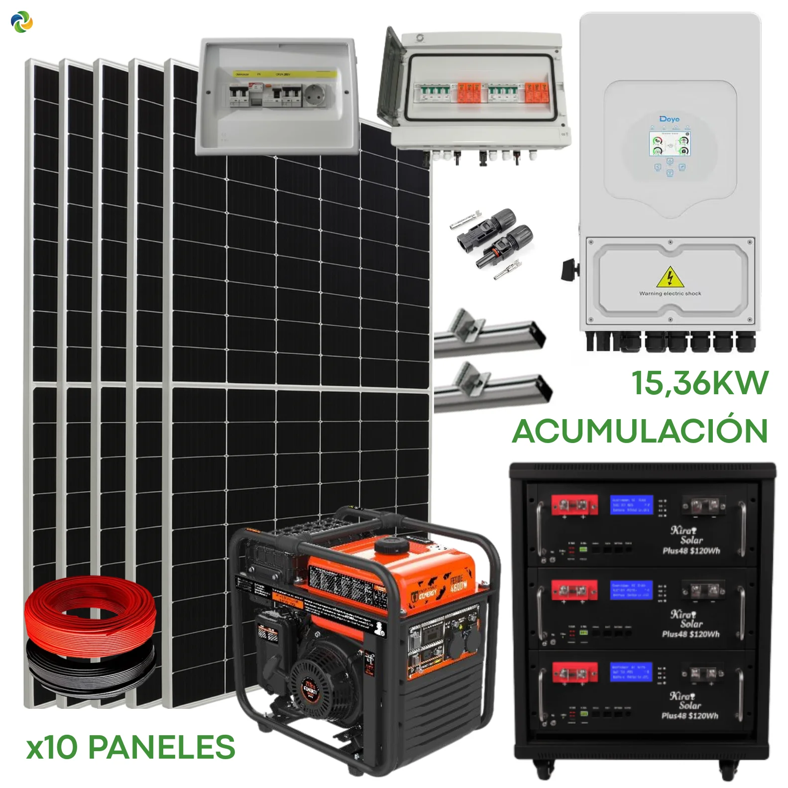 Kit Solar Híbrido Deye 6kW con 15,36kW batería de litio (6,10kW Aiko Solar) + Generador Feroe 4,6kW